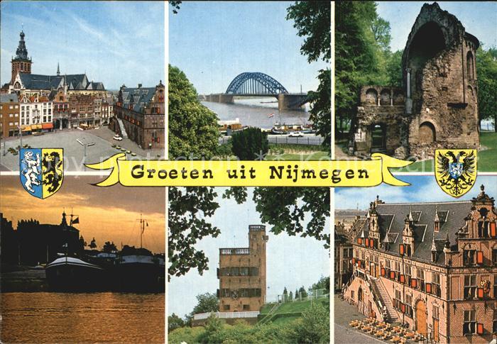 old postcard Nijmegen Rathaus Hafen Bruecke postalisch gelaufen Erhaltung siehe scans