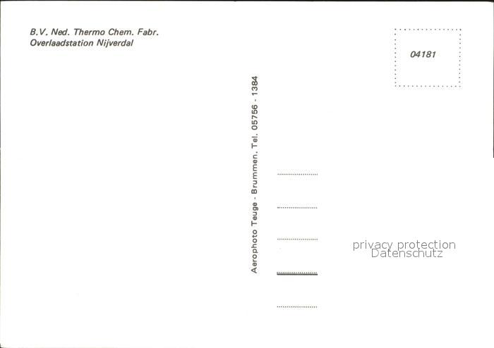 Nijverdal BV Ned Thermo Chem Fabr Overlaadstation Fliegeraufnahme postalisch nicht gelaufen Erhaltung siehe scans
