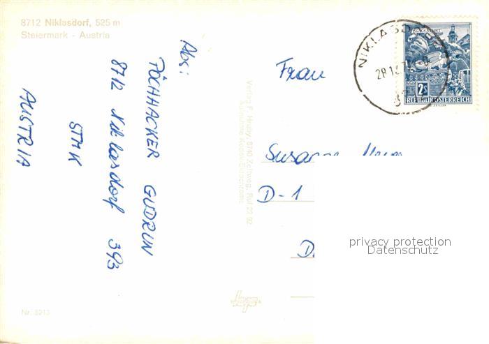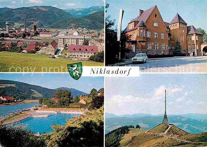 72673285 alte Postkarte Niklasdorf Panorama Ortsmotiv Schwimmbad Fernmeldeturm postalisch gelaufen Erhaltung siehe scans [WerneD78] KatCode: 11390223061110