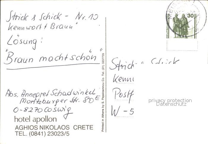 old postcard Nikolaos Agios Hotel Apollon Kreta postalisch gelaufen Erhaltung siehe scans