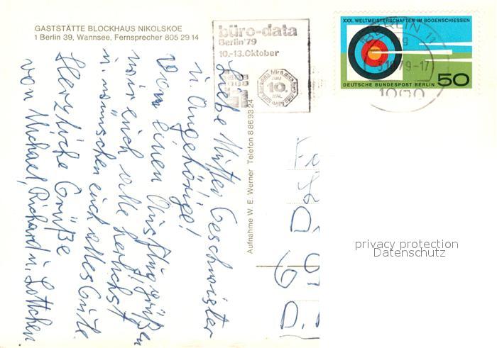 73608956 alte Postkarte Nikolskoe Berlin Gaststaette Blockhaus Nikolskoe postalisch gelaufen Erhaltung siehe scans [WerneD78] KatCode: 11110011000000
