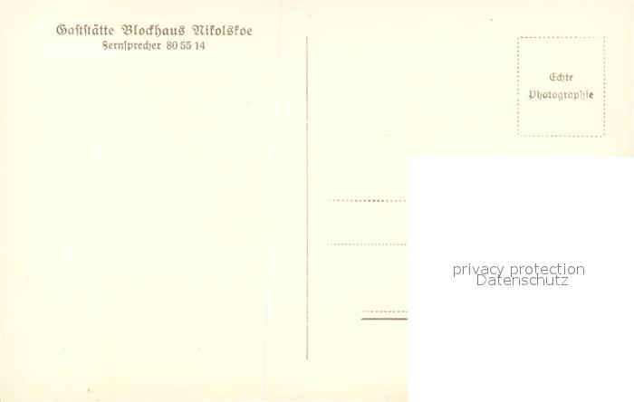 43368086 Nikolskoe Berlin Gaststaette Blockhaus Terrasse postalisch nicht gelaufen Erhaltung siehe scans [FriedD77] KatCode: 11110011000000