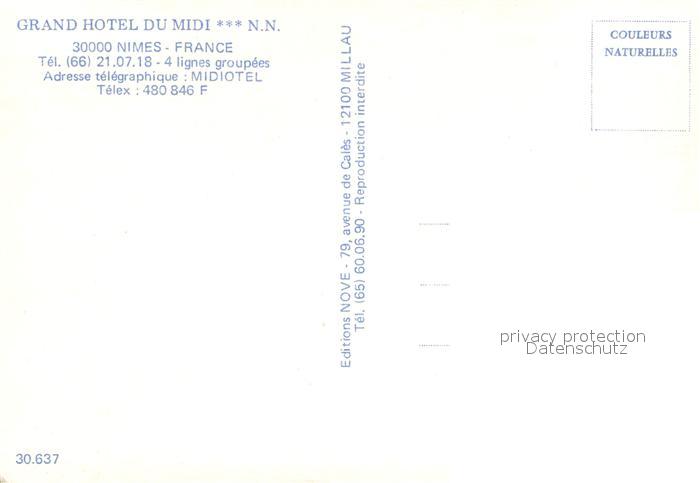 13720147 Nimes Grand Hotel du Midi Restaurant Foyer postalisch nicht gelaufen Erhaltung siehe scans [FriedD77] Frie Katcode 11170030230189