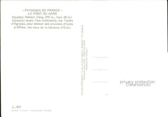 12306720 Nimes Le Pont du Gard postalisch nicht gelaufen Erhaltung siehe scans KatCode: 11170030230189