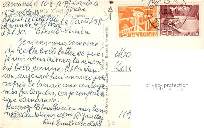 13500319 carte postale Nimes Les Jardins de la Fontaine Nymph postalisch gelaufen Erhaltung siehe scans [LiesaD40] KatCode: 11170030230189