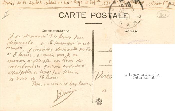13057013 carte postale Nimes Militaerlager postalisch gelaufen Erhaltung siehe scans [KathaD81] KatCode: 11170030230189