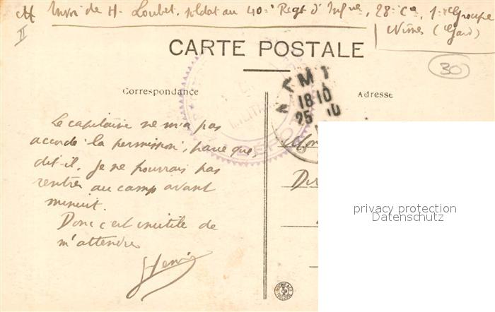 13057048 carte postale Nimes Militaerlager postalisch gelaufen Erhaltung siehe scans [KathaD81] KatCode: 11170030230189