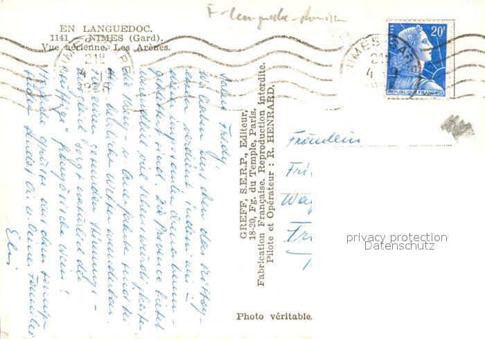 13235490 carte postale Nimes Vue aerienne Les Arenes postalisch gelaufen Erhaltung siehe scans [WerneD78] KatCode: 11170030230189