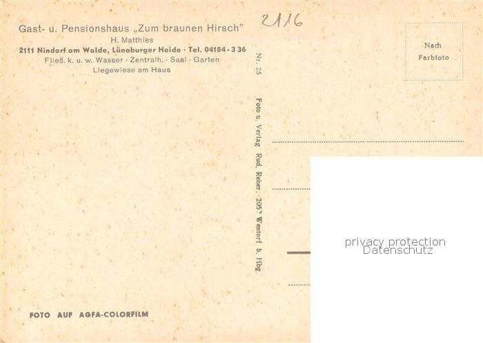 73711941 Nindorf Bleckede Gasthaus Zum Braunen Hirsch Aussenansicht postalisch nicht gelaufen Erhaltung siehe scans [LiesaD40] KatCode: 11110003355009