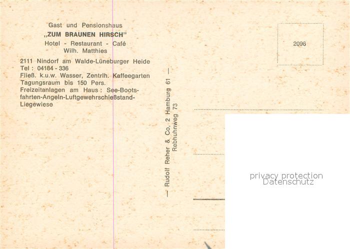 73724586 Nindorf Nordheide Gasthaus Pension Zum Braunen Hirsch Bootsanleger postalisch nicht gelaufen Erhaltung siehe scans [FriedD77] KatCode: 11110003353016