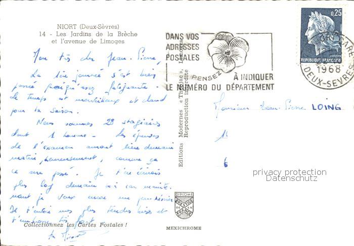 12306254 carte postale Niort 79 Avenue de Limoges postalisch gelaufen Erhaltung siehe scans KatCode: 11170079279191