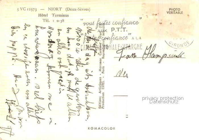 12934861 carte postale Niort 79 Hotel Terminus postalisch gelaufen Erhaltung siehe scans [NatalD47] KatCode: 11170079279191