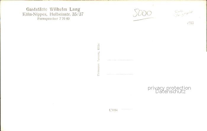 31720518 Nippes Restaurant Wilhelm Lang postalisch nicht gelaufen Erhaltung siehe scans KatCode: 11110005315000