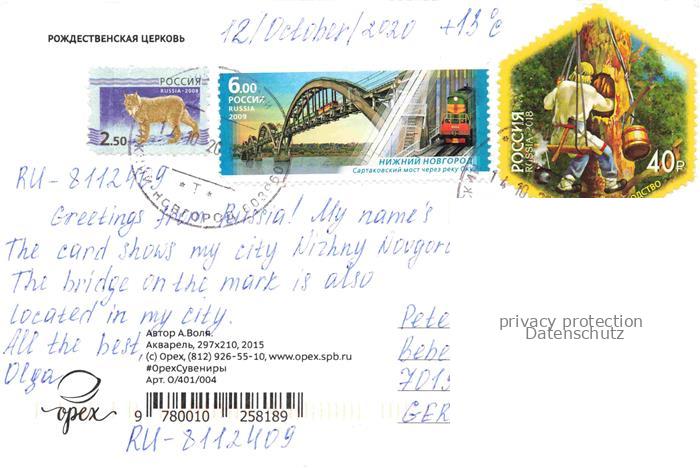 74042046 old postcard Nischni Nowgorod Gorki Weinachts Kirche postalisch gelaufen Erhaltung siehe scans [IrynaD87] KatCode: 11440