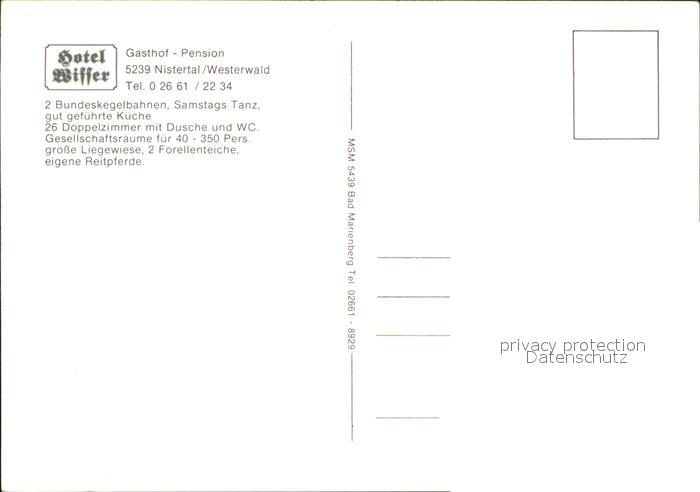 72569701 Nistertal Westerwald Gasthaus Pension Hotel Wiffer Pferdewagen postalisch nicht gelaufen Erhaltung siehe scans [LiesaD40] KatCode: 11110007143279
