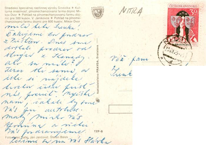old postcard Nitra Slovakia Kulturna miestnosi Pohlad na pinomechanizovanu farmu dojnic Janikovce Mikov Dvor postalisch gelaufen Erhaltung siehe scans [WerneD78]