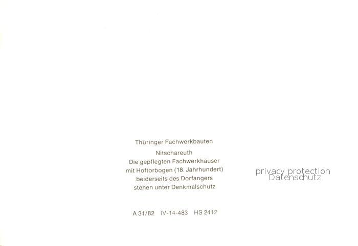 72977963 Nitschareuth Fachwerkhaeuser mit Hoftorbogen 18. Jhdt. Denkmalschutz Serie Thueringer Fachwerkbauten postalisch nicht gelaufen Keine Postkarte (siehe scan) Erhaltung siehe scans [FriedD77] KatCode: 11110016076039
