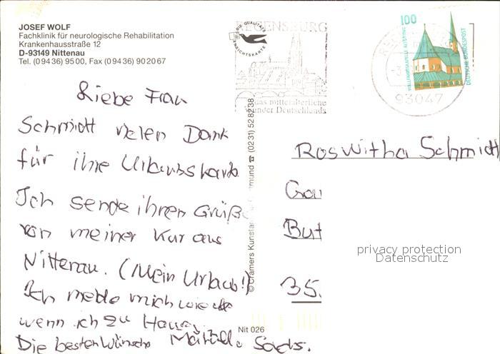 72453519 alte Postkarte Nittenau Fachklinik Josef Wolf postalisch gelaufen Erhaltung siehe scans KatCode: 11110009376149
