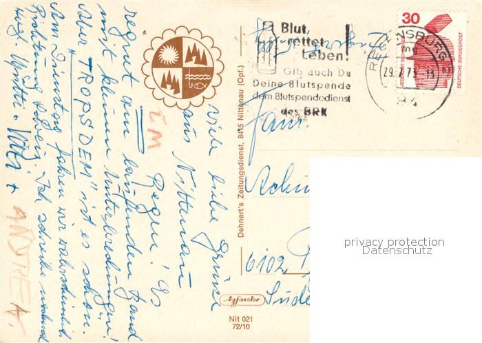 73671562 alte Postkarte Nittenau Motiv mit Kirche Freibad Fliegeraufnahme postalisch gelaufen Erhaltung siehe scans [FriedD77] KatCode: 11110009376149