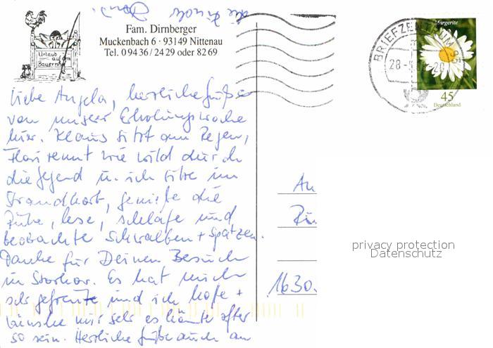 72750536 alte Postkarte Nittenau Urlaub auf dem Bauernhof Familie Dirnberger postalisch gelaufen Erhaltung siehe scans [LiesaD40] KatCode: 11110009376149