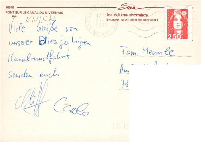 13948973 Nivernais 76 Seine-Maritime Pont sur le Canal du Nivernais postalisch gelaufen Erhaltung siehe scans [WerneD78] carte postale Wern Katcode 11170076376157