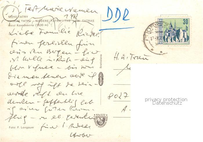 Nizke Tatry Hotel Kosodrevina postalisch nicht gelaufen Erhaltung siehe scans [WerneD78]