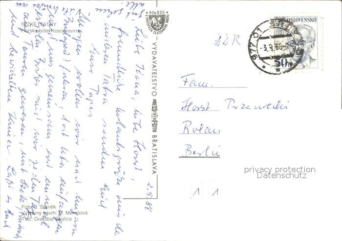 old postcard Nizke Tatry Hotel Kosodrevina postalisch gelaufen Erhaltung siehe scans