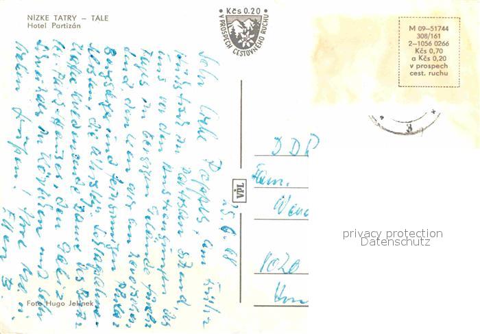 old postcard Nizke Tatry Hotel Partizan postalisch gelaufen Erhaltung siehe scans [LiesaD40]
