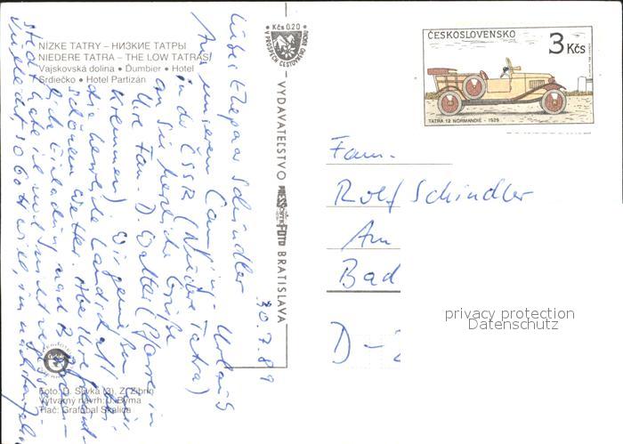 old postcard Nizke Tatry Hotel Partizan Landschaftspanorama Sessellift postalisch gelaufen Erhaltung siehe scans
