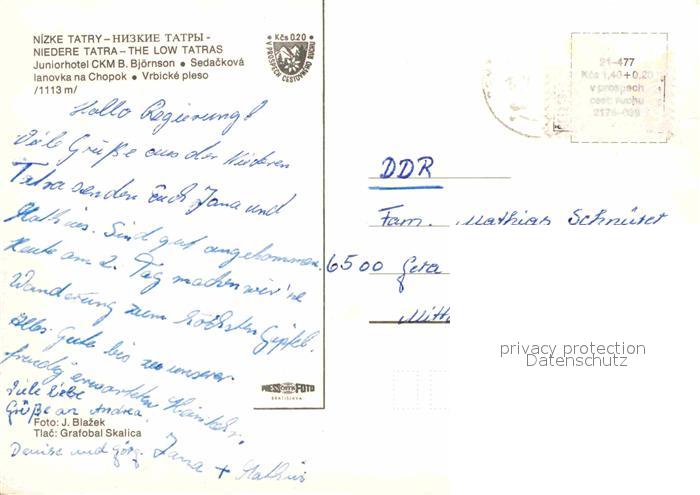 old postcard Nizke Tatry Juniorhotel B.B Joernson postalisch gelaufen Erhaltung siehe scans [LiesaD40]