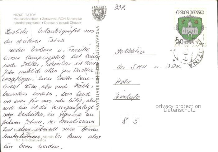 old postcard Nizke Tatry Mikulasska Chata postalisch gelaufen Erhaltung siehe scans