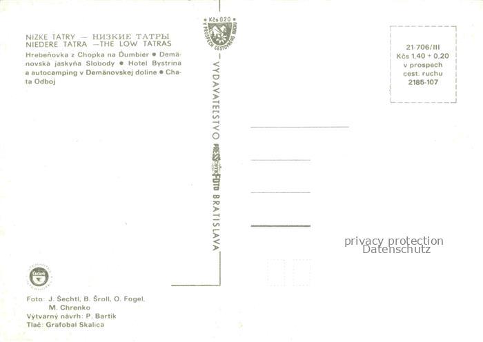 74025038 Nizke Tatry Niedere Tatra Slovakia Hrebenovka z Chopka na Dumbier Demaenosvka jaskyna Slobody Hotel Bystrina Autocamping Demaenovskej doline Chata Odboj postalisch nicht gelaufen Erhaltung siehe scans [FriedD77] KatCode: 11490