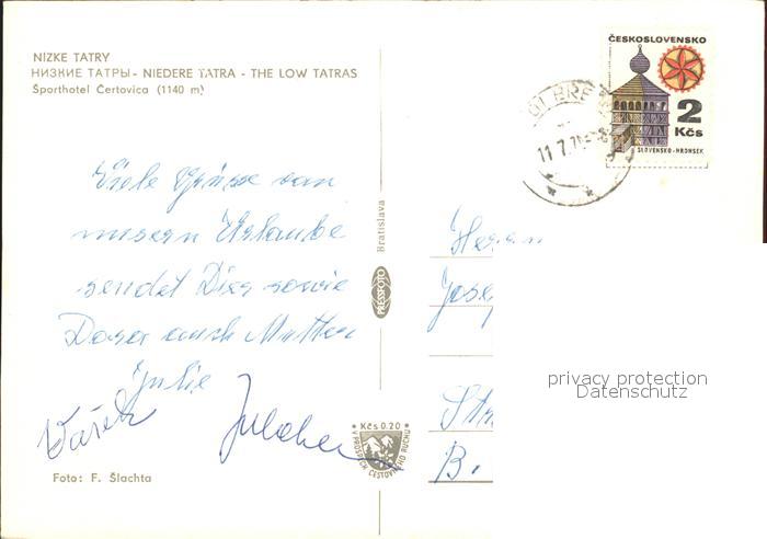 old postcard Nizke Tatry Sporthotel Certovica postalisch gelaufen Erhaltung siehe scans
