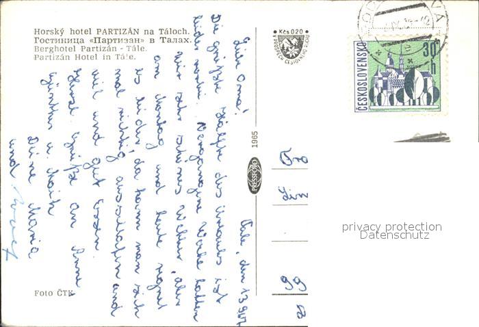 old postcard Nizke Tatry Taloch Horsky hotel Partizan postalisch gelaufen Erhaltung siehe scans