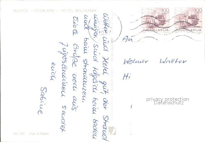 old postcard Njivice Hotel Beli Kamik postalisch gelaufen Erhaltung siehe scans