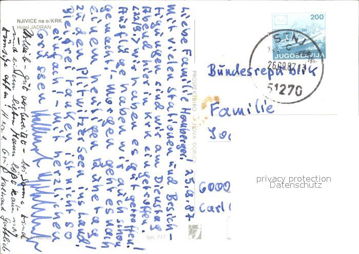 old postcard Njivice Hotel Jadran Hafen Promenade postalisch gelaufen Erhaltung siehe scans