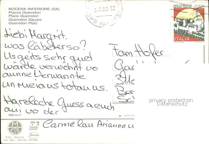 old postcard Nocera Superiore Guerridori Platz postalisch gelaufen Erhaltung siehe scans