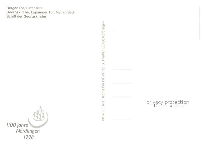 73108128 Noerdlingen Berger Tor Fliegeraufnahme Georgskirche Loepsinger Tor postalisch nicht gelaufen Erhaltung siehe scans [NatalD47] KatCode: 11110009779194
