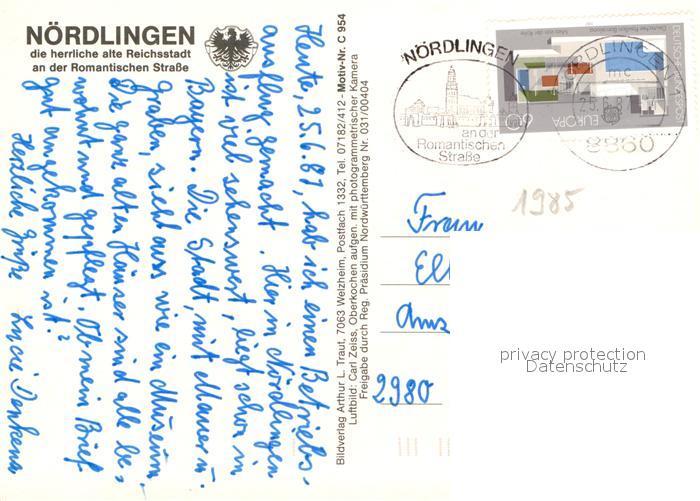 72932245 alte Postkarte Noerdlingen Fliegeraufnahme postalisch gelaufen Erhaltung siehe scans [LiesaD40] KatCode: 11110009779194