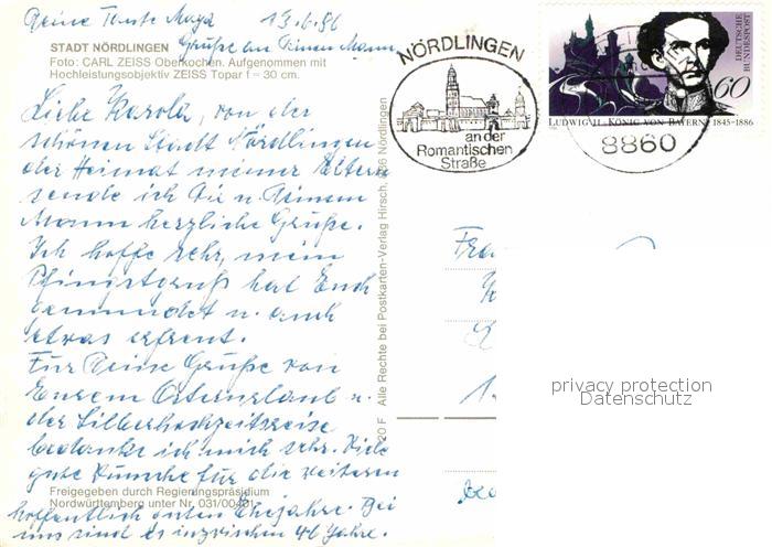 72837600 alte Postkarte Noerdlingen Fliegeraufnahme postalisch gelaufen Erhaltung siehe scans [PaolaD17] KatCode: 11110009779194