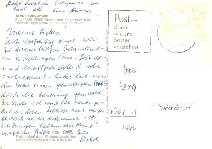 72764416 alte Postkarte Noerdlingen Fliegeraufnahme postalisch gelaufen Erhaltung siehe scans [AndreD76] KatCode: 11110009779194