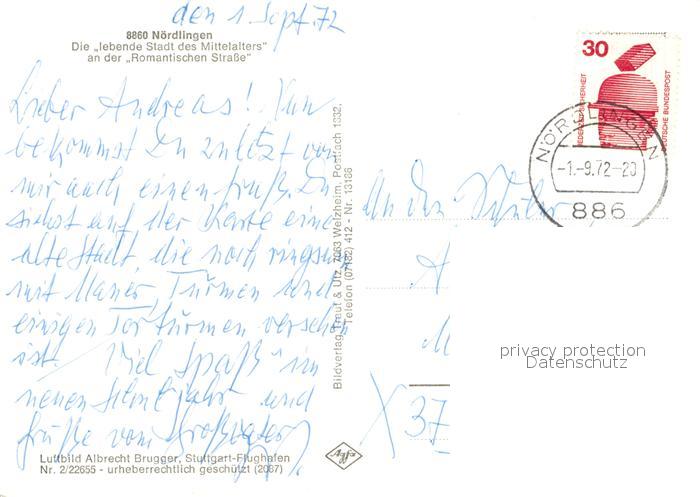 73248721 alte Postkarte Noerdlingen Fliegeraufnahme postalisch gelaufen Erhaltung siehe scans [NatalD47] KatCode: 11110009779194
