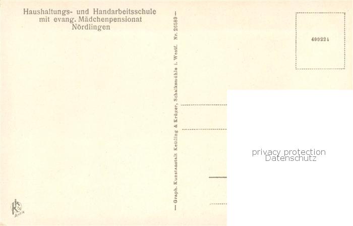 73772180 Noerdlingen Haushaltungs und Handarbeitsschule Ev Maedchenpensionat Haustoechter Klasse III Maschinenkurs im Sekretariat postalisch nicht gelaufen Erhaltung siehe scans [FriedD77] KatCode: 11110009779194