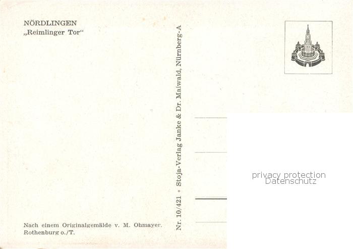 73777761 Noerdlingen Reimlinger Tor Kuenstlerkarte postalisch nicht gelaufen Erhaltung siehe scans [WerneD78] KatCode: 11110009779194