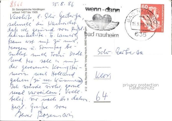 72349954 alte Postkarte Noerdlingen St Georgskirche Inneres postalisch gelaufen Erhaltung siehe scans KatCode: 11110009779194