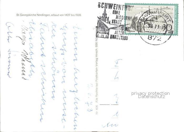 72356817 alte Postkarte Noerdlingen St Georgskirche Kanzel Altar 15. Jhdt. postalisch gelaufen Erhaltung siehe scans KatCode: 11110009779194