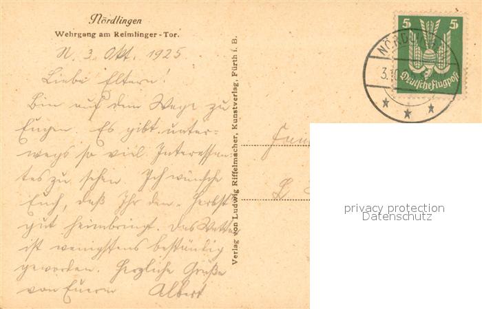 73622336 alte Postkarte Noerdlingen Wehrgang am Reimlinger Tor postalisch gelaufen Erhaltung siehe scans [WerneD78] KatCode: 11110009779194