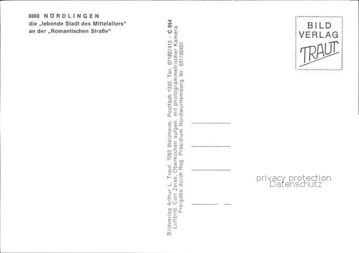 72285461 Noerdlingen Zentrum Stadt des Mittelalters Romatische Strasse Fliegeraufnahme postalisch nicht gelaufen Erhaltung siehe scans KatCode: 11110009779194