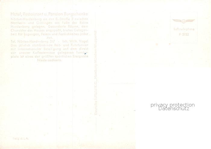 73874005 Noerten-Hardenberg Hotel Restaurant Burgschenke Fliegeraufnahme mit Ruine postalisch nicht gelaufen Erhaltung siehe scans [WerneD78] KatCode: 11110003155010