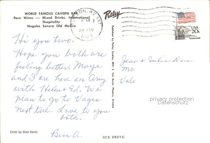 old postcard Nogales Sonora Cavern Bar postalisch gelaufen Erhaltung siehe scans